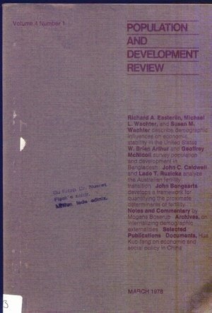 İÇİNDEKİLERPOPULATION AND DEVELOPMENT REVIEWVOLUME 4 NUMBER 1 March 1978 Articles John Bongaarts John C. Caldwell Lado T. Ruzicka W. Brian Arthur Geoffrey McNicoll Richard A. Easterlin Michael L. Wachter Susan M. Wachter 1 Demographic Influences on Economic Stability: The United States Experience 23 An Analytical Survey of Population and Development in Bangladesh 81 The Australian Fertility Transition: An Analysis 105 A Framework for Analyzing the Proximate Determinants of Fertility Notes and Commentary Mogens Boserup 133 Fear of Doomsday: Past and Present Archives 145 On Internalizing Demographic Externalities: The Case of Preindustrial England 151 Selected Publications Documents 167 On Economic and Social Policy in China: A Report by Hua Kuo-feng 181 Abstracts 186 Authors for This Issue ![]() |
