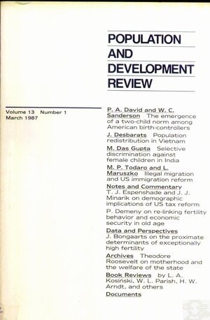İÇİNDEKİLERPOPULATIONAND______ DEVELOPMENT REVIEW Volume 13 Number 1 March 1987 Articles The Emergence of a Two-Child Norm among American Birth-Controllers 1 Paul A. David Warren C. Sanderson Population Redistribution in the Socialist Republic of Vietnam 43 Jacqueline Desbarats Selective Discrimination against Female Children in Rural Punjab, India 77 Monica Das Gupta Illegal Migration and US Immigration Reform: A Conceptual Framework 101 Michael P. Todaro Lydia Maruszko Notes and Commentary Demographic Implications of the 1986 US Tax Reform 1 1 5 Thomas J. Espenshade Joseph J. Minarik ![]() |