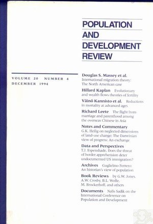 İÇİNDEKİLERPOPULATION AND______ DEVELOPMENT REVIEWVOLUME 20 NUMBER 4 DECEMBER 1994 ARTICLES An Evaluation of International Migration Theory: The North American Case DOUGLAS S. MASSEY JOAQUI'N ARANGO GRAEME HUGO ALI KOUAOUCI ADELA PELLEGRINO J. EDWARD TAYLOR Evolutionary and Wealth Flows Theories of Fertility: Empirical Tests and New Models HILLARD KAPLAN Reductions in Mortality at Advanced Ages: Several Decades of Evidence from 27 Countries VAINO KANNISTO JENS LAURITSEN A. ROGER THATCHER JAMES W. VAUPEL The Continuing Flight from Marriage and Parenthood Among the Overseas Chinese in East and Southeast Asia: Dimensions and Implications RICHARD LEETE NOTES AND COMMENTARY Neglected Dimensions of Global Land-Use Change: Reflections and Data GERHARD K. HEILIG The Darwinian View of Progress: Comment on Sen ABHIJIT GUHA The Darwinian View of Progress: Reply to Guha AMARTYA SEN DATA AND PERSPECTIVES Does the Threat of Border Apprehension Deter Undocumented US Immigration? THOMAS J. ESPENSHADE ARCHIVES Guglielmo Ferrero: An Historian's View of Population BOOK REVIEWS William J. Goode, World Changes in Divorce Patterns GAVIN W. JONES Stephen J. Kunitz, Disease and Social Diversity: The European Impact on the Health of Non-Europeans ALFRED W. CROSBY Marianne A. Ferber and Julie A. Nelson (eds.), Beyond Economic Man: Feminist Theory and Economics BARBARA L. WOLFE Cristina Szanton Blanc with Contributors, Urban Children in Distress: Global Predicaments and Innovative Strategies MARTIN BROCKERHOFF Short Reviews DOCUMENTS Nafis Sadik on the International Conference on Population and Development ABSTRACTS AUTHORS FOR THIS ISSUE CONTENTS TO VOLUME 20 ACKNOWLEDGMENTS ![]() |
