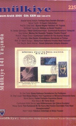 İÇİNDEKİLERGENEL YAYIN YÖNETMENİNDENDr. Serdar ŞAHİNKAYA .......................... SİYASAL BİLGİLER FAKÜLTESİ 141 YAŞINDA Prof. Dr. Celal GÖLE..................................................... MÜLKİYE VE DEVLET YÖNETİMİ M. Hikmet YAVUZYİĞİT.......................... YURTTAŞA KARŞI DEVLETİN GÖREVLERİ Aktaran : Prof. Dr. Özer OZANKAYA....................... 10 KASIM'1 HATIRLARKEN ServerTANİLLİ........................... "İDEAL CUMHURİYET KÖYÜ" CUMHURİYET'4 KURANLARIN TAHAYYÜLÜNE BİR ÖRNEK Dr. Serdar ŞAHİNKAYA ............................................................................. MERKEZ SOL SİYASETİN "ÇAĞDAŞ YÖNETİM PROJESİ" Uluç GÜRKAN...................................................................................... CUMHURİYET TARİHİNİN EN YÜZ KIZARTICI BELGESİ Prof. Dr. t. Reşat ÖZKAN..................................................................... ULUS DEVLET, KÜRESELLEŞME, DEMOKRASİ VE TÜRKİYE Ali TARTANOĞLU....................................................................................... GÜNEY KAFKASYA DEVLETLERİNİN DIŞ POLİTİKALARI Dr. Erel TELLAL.......................................................................................... YENİ DÜNYA DÜZENİ, YENİ YUGOSLAVYA VE MİLOSEVİÇ DÖNEMİNİN SONU Dr. İlhan UZGEL......................................................................................... GÜNEY KORE, KALKINMA FIRSATINI NASIL YAKALADI? Prof. Dr. Nesrin SUNGUR........................................................................... MÜLKİYE CiLT: XXIV SAVI: 225 ESNEK ÇALIŞMADA UZLAŞMA ARAYIŞLARI Yrd. Doç. Dr. Berrin CEYLAN-ATAMAN..................... FAZİLET PARTİSİ'NİN KAPATILMA DAVASI Murat SEVİNÇ............................................................. BİR TEMİZ SOLUK İlhan SELÇUK............. IŞIĞI KİLİTLENEMEYEN ŞAİR; ŞÜKRAN KURDAKUL, ÇOK YÖNLÜ KİŞİLİĞİYLE HÂLÂ HEYECANLI VE COŞKULU İlhan SELÇUK............................................................................................. HUKUKUN ÜSTÜNLÜĞÜ VE BÜTÇE YASALARI (1990'LI YILLAR) Nahit YÜKSEL............................................................................................. YENİ KURULACAK BİR İLİN KAMU MALİ KESİMİ ÜZERİNDEKİ YÜKÜ NASIL HESAPLANMALADIR? Recep SANAL............................................................................................... YAZARLARA DUYURU ......................................................................... NOTLARCilt:XXIV ![]() |