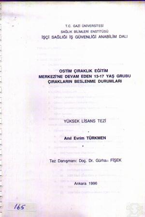 Ostim Çıraklık Eğitim Merkezi'ne Devam Eden 13-17 Yaş Grubu Çırakların Beslenme Durumları