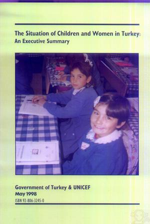 İÇİNDEKİLERCONTENTSACKNOWLEDGEMENTS. INTRODUCTION............ I. DEMOGRAPHIC PROFILE OF TURKEY ACRONYMS.................... II. IMPACT OF ECONOMY ON WOMEN AND CHILDREN. A) Economic development and social development........ B) Salaries, wages, and purchasing power..................... C) Women and employment........................................... D) Unemployment.......................................................... E) Child labour................................................................. III. HEALTH AND NUTRITION............................... A) Child morbidity and mortality B) Nutritional issues affecting Turkish children. C) Breastfeeding............................................... D) Iodine deficiency E) Maternal health........................................... F) Family planning................................ OHIV/AIDS.................................................... H)The health system......... i) public... ii) private............................................ IV. EDUCATION............. A) School attendance i) preschool education................................................... ii) primary and secondary schools and rates of attrition. B) Literacy and the quality of education................................... C) Curriculum.......................................................................... D)Non-formal education....................................................... i) adult education and skill training.............................. ii) Intersectoral Volunteers Training............................. E)The education system and budget.......................................... V. CHILDREN IN NEED OF SPECIAL PROTECTION MEASURES. A) Disabled children................................................................ B) Children of migrant and seasonal workers........................... C) Refugee children....................................... ................... D) Children in prison..................... E) Working and livingon the street. VI. WATER SUPPLY,SANITATION, AND HYGIENE. VII. COMMUNICATION................................ A) Newspapers and magazines......... B) Radio and television............................ C) Telecommunications........... D) Informal channels of communication. VIM. PAST COOPERATION BETWEEN THE GOVERNMENT OF TURKEY UNICEF........................................................................................... IX. COOPERATION WITH OTHER ORGANIZATIONS. A) United Nations agancies.................................... B) NGOs and universities........................................ X. PRIORITY ISSUES TO BE ADDRESSED. XI. APPENDICES.............................................................................. A) Implementation of the Convention on the Rights of the Child. B) UNICEF Mission statement..................................................... ![]() |