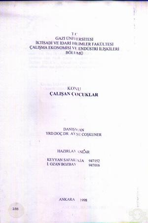 İÇİNDEKİLERI. ÇALIŞAN ÇOCULARA) Çocuk İşgücü Sorunları A.a) Eğitim Sorunu A.b) Fiziksel Gelişim Sorunu A.c) Zihinsel Gelişim Sorunu A.d) Sosyal Gelişim Sorunu A.e) Duygusal Gelişim Sorunu B) Çocuk İşgücü Hakkında Düzenlemelerin Tarihi Gelişimi C) Elde Edilen Başarımlar D) Çalışan Çocukların Genel Durumu D.a) Çalışma Nedenleri D.b) Çocukların Çalışmasını Belirleyen Temel Etkenler D.b.a) Gelişme , Teknoloji , Nüfus D.b.b) Gelir Düzeyi ve Eşitsizliği D.b.c) Öğrenim D.b.d) Çocuklar İçin İşgücü Piyasası D.b.e) Aile D.b.f) Gelenek , Adet ve Değerler E) Türkiye'de Durum E.a) Çalışan Çocuklar Konusunda Genel Veriler E.b) Çalışan Çocukların Durumu E.b.a) Çalışan Çocukların Temel Kategorileri E.b.b) Çocuk Çalışmasının Niteliği II. SANAYİDE ÇALIŞAN ÇOCUKLARIN HAKKINDA BİR SAHA ÇALIŞMASI NOTLARGazi Üniversitesi İktisadi ve İdari Bilimler Fakültesi Çalışma Ekonomisi ve Endüstri İlişkileri Bölümü ![]() |
