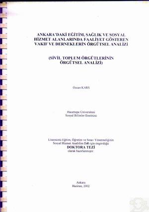 Ankara'daki Eğitim,Sağlık ve Sosyal Hizmet Alanlarında Faaliyet Gösteren Vakıf ve Derneklerin Örgütsel Analizi