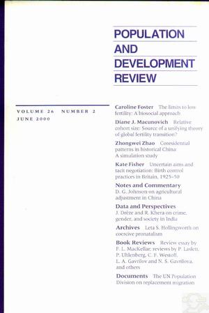 İÇİNDEKİLERARTICLESThe Limits to Low Fertility: A Biosocial Approach CAROLINE FOSTER Relative Cohort Size: Source of a Unifying Theory of Global Fertility Transition? DIANE J. MACUNOVICH Coresidential Patterns in Historical China: A Simulation Study ZHONGWEI ZHAO Uncertain Aims and Tacit Negotiation: Birth Control Practices in Britain, 1925-50 KATE FISHER NOTES AND COMMENTARY Agricultural Adjustment in China: Problems and Prospects D. GALE JOHNSON DATA AND PERSPECTIVES Crime, Gender, and Society in India: Insights from Homicide Data JEAN DREZE REETIKA KHERA ARCHIVES Leta S. Hollingworth on Coercive Pronatalism BOOK REVIEWS The Predicament of Population Aging: A Review Essay on Peter G. Peterson, Gray Dawn: How the Coming Age Will Transform America-and the World F. LANDIS MACKELLAR Ken Dychtwald, Age Power: How the 21st Century Will Be Ruled by the New Old PETER LASLETT Richard Leete (ed.), Dynamics of Values in Fertility Change PETER UHLENBERG Donald T. Critchlow, Intended Consequences: Birth Control, Abortion, and the Federal Government in Modern America CHARLES F. WESTOFF Bernard Jeune and James W. Vaupel (eds.), Validation of Exceptional Longevity LEONID A. GAVRILOV NATALIA S. GAVRILOVA Short Reviews DOCUMENTS The UN Population Division on Replacement Migration ABSTRACTS AUTHORS FOR THIS ISSUE ![]() |