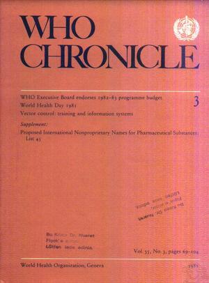 İÇİNDEKİLERWHO Executive Board reviews, endorses 1982-83 programme budget World Health Day 1981: Health for all by the year 2000Vector control: training and information systems in environmental management From the Regions In brief Notes and news: WHO experts recommend continued use of BCG vaccination against tuberculosis Malaria: document summarizing recent scientific progress now available WHO launches World Health Forum Drugs and the elderly Tropical disease research: more financial resources urgently needed Human monkeypox World Health reflects "Health for all by the year 2000" and marks World Telecommunication Day 1981 Death of Dr Karl Evang Recent WHO publications lent: Proposed International Nonproprietary Names for Pharmaceutical Substances: List 45 ![]() |