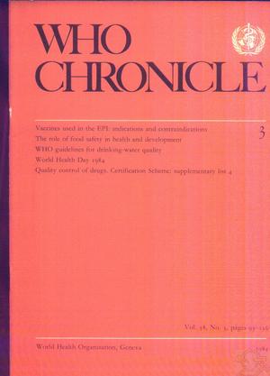 İÇİNDEKİLERVaccines used in the EPI: indications and contraindicationsThe role of food safety in health and development-M. Abdussalam WHO guidelines for drinking-water quality H. Galal Gorchev and G. Ozolins World Health Day 1984. Children's health-tomorrow's wealth Quality control of drugs. Certification Scheme. Participating countries-supplementary list 4 From the Regions Americas: Bibliography on disaster preparedness and relief Eastern Mediterranean: Appropriate technology in maternal and child health Intercountry Scientific Group Meeting on Liver Diseases Notes and news Three practical guides on control of foodborne diseases-Codex standards for food safety-International course on food science and nutrition, 1985-Investigation of smallpox rumours-Cholera in 1983 World Health Statistics Quarterly: special issue on mental health-The Cook Islands joins WHO-Medical school update Recent WHO publications ![]() |