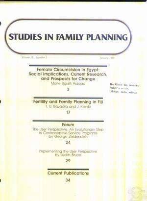İÇİNDEKİLERCONTENTS Female Circumcision in Egypt: Social Implications, Current Research, and Prospects for Change Marie Bassili Assaad Fertility and Family Planning in Fiji T. U. Bavadra and J. Kierski 17 Forum The User Perspective: An Evolutionary Step in Contraceptive Service Programs by George Zeidenstein 24 Implementing the User Perspective by Judith Bruce 29 Current Publications 34 ![]() |
