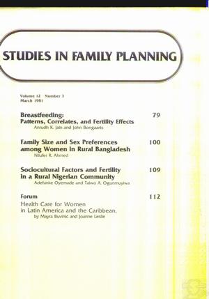 İÇİNDEKİLERCONTENTS Breastfeeding: Patterns, Correlates, and Fertility Effects Anrudh K. Jain and John Bongaarts Family Size and Sex Preferences among Women in Rural Bangladesh Nilufer R.Ahmed Sodocuttural Factors and Fertility in a Rural Nigerian Community Adefunke Oyemade and Taiwo A. Ogunmuyiwa Forum Health Care for Women in Latin America and the Caribbean, ![]() |