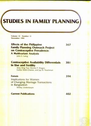Effects of the Philippine Family Planning Outreach Project on Contraceptive Prevalence: A Multivariate Analysis