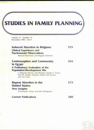 İÇİNDEKİLERContents Induced Abortion in Belgium: Clinical Experience and Psychosocial Observations Marcel Vekemans and Brigitte Dohmen Contraception and Community in Egypt: A Preliminary Evaluation of the Population/Development Mix J. Mayone Stycos, Aziz Bindary, Roger C. Avery, Atef M. Khalifa, Hussein Abdel-Aziz Sayed, and Ann Way Repeat Abortion in the United States: New Insights Christopher Tietze and John Bongaarts Current Publications ![]() |