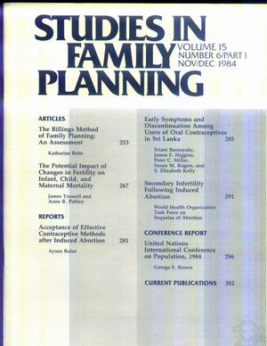 İÇİNDEKİLERContents ARTICLES The Billings Method of Family Planning: An Assessment Katharine Betts The Potential Impact of Changes in Fertility on Infant, Child, and Maternal Mortality James Trussell and Anne R. Pebley REPORTS Acceptance of Effective Contraceptive Methods after Induced Abortion Aysen Bulut Early Symptoms and Discontinuation Among Users of Oral Contraceptives in Sri Lanka Sriani Basnayake, James E. Higgins, Peter C. Miller, Susan M. Rogers, and S. Elizabeth Kelly Secondary Infertility Following Induced Abortion World Health Organization Task Force on Sequelae of Abortion CONFERENCE REPORT United Nations International Conference on Population,1984 George F. Brown CURRENT PUBLICATIONS ![]() |