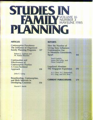 İÇİNDEKİLERContents ARTICLES REPORTS Contraceptive Prevalence: The Influence of Organized Family Planning Programs Robert J. Lapham and W. Parker Mauldin Continuation and Effectiveness of Contraceptive Practice: A Cross-Sectional Approach John E. Laing Breastfeeding, Contraception, and Birth Intervals in Developing Countries How the Number of Living Sons Influences Contraceptive Use in Menoufia Govemorate, Egypt Saad Gadalla, James McCarthy, and Oona Campbell Legalized Abortion: The Singapore Experience A.J. Chen, S.C. Emmanuel, S.L. Ling, and S.B. Kwa CURRENT PUBLICATIONS David P. Smith ![]() |