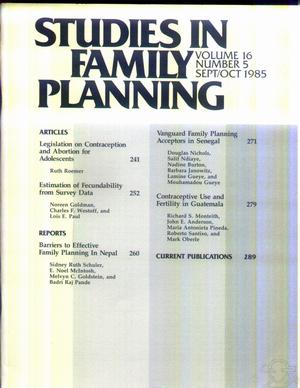 İÇİNDEKİLERContents ARTICLES Legislation on Contraception and Abortion for Adolescents Ruth Roemer Estimation of Fecundability from Survey Data Noreen Goldman, Charles F. Westoff, and Lois E. Paul REPORTS Barriers to Effective Family Planning In Nepal Sidney Ruth Schuler, E. Noel McIntosh, Melvyn C. Goldstein, and Badri Raj Pande Vanguard Family Planning Acceptors in Senegal Douglas Nichols, Salif Ndiaye, Nadine Burton, Barbara Janowitz, Lamine Gueye, and Mouhamadou Gueye Contraceptive Use and Fertility in Guatemala Richard S. Monteith, John E. Anderson, Maria Antonieta Pineda, Roberto Santiso, and Mark Oberle CURRENT PUBLICATIONS ![]() |