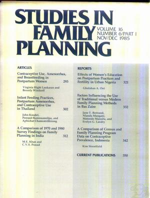 İÇİNDEKİLERContents ARTICLES Contraceptive Use, Amenorrhea, and Breastfeeding in Postpartum Women Virginia Hight Laukaran and Beverly Winikoff Infant Feeding Practices, Postpartum Amenorrhea, and Contraceptive Use in Thailand John Knodel, Peerasit Kamnuansilpa, and Aphichat Chamratrithirong A Comparison of 1970 and 1980 Survey Findings on Family Planning in India M.E. Khan and C.V.S. Prasad REPORTS Effects of Women's Education on Postpartum Practices and Fertility in Urban Nigeria Gbolahan A. Oni Factors Influencing the Use of Traditional versus Modern Family Planning Methods in Bas Zaire Jane T. Bertrand, Nlandu Mangani, Matondo Mansilu, and Evelyn G. Landry A Comparison of Census and Family Planning Program Data on Contraceptive Prevalence, Indonesia Kim Streatfield CURRENT PUBLICATIONS ![]() |