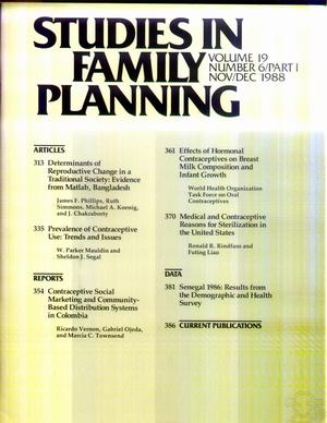 İÇİNDEKİLERContents ARTICLES 313 Determinants of Reproductive Change in a Traditional Society: Evidence from Matlab, Bangladesh James F. Phillips, Ruth Simmons, Michael A. Koenig, and J. Chakraborty 335 Prevalence of Contraceptive Use: Trends and Issues W. Parker Mauldin and Sheldon J. Segal REPORTS 354 Contraceptive Social Marketing and Community-Based Distribution Systems in Colombia Ricardo Vernon, Gabriel Ojeda, and Marcia C. Townsend 361 Effects of Hormonal Contraceptives on Breast Milk Composition and Infant Growth World Health Organization Task Force on Oral Contraceptives 370 Medical and Contraceptive Reasons for Sterilization in the United States Ronald R. Rindfuss and Futing Liao DATA 381 Senegal 1986: Results from the Demographic and Health Survey 386 CURRENT PUBLICATIONS ![]() |
