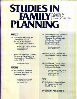 İÇİNDEKİLERContents ARTICLES 205 Adolescent Sexuality and Fertility in Kenya: A Survey of Knowledge, Perceptions, and Practices Ayo A. Ajayi, Leah T. Marangu, Janice Miller, and John M. Paxman 217 Women's Status and Fertility: Successive Cross-Sectional Evidence from Tamil Nadu, India, 1970-80 Shireen J. Jejeebhoy REPORTS 231 Reproductive Health in Romania: Reversing the Ceausescu Legacy 241 Correlates of Short Interbirth Intervals in Peninsular Malaysia: Their Pathways of Influence Through Breastfeeding and Contraceptive Use Julie DaVanzo and Ellen H. Starbird 255 Birth Spacing Patterns and Correlates in Shaanxi, China Ping Tu 264 Fertility and Contraceptive Use Among Young Adults in Harare, Zimbabwe Esther Boohene,June Tsodzai, Karen Hardee-Cleaveland, Sharon Weir, and Barbara Janowitz Charlotte Hord, Henry P. David, France Donnay, and Merrill Wolf DATA 272 Bolivia 1989: Results from the Demographic and Health Survey 277 CURRENT PUBLICATIONS ![]() |