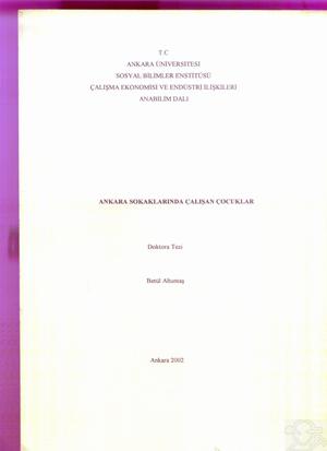 İÇİNDEKİLERİÇİNDEKİLER Teşekkür İçindekiler 1. Giriş 2. Sokak Çocukları Sorununa Toplu Bir Bakış 2.1 Sokak Çocuklarının Sınıflandırılması 2.2. Sokak Çocukları Sorununun Nedenleri 2.2.1. Kentsel Yoksulluk 2.2.2. Aile İstismarı 2.2.3.Modernleşme, Kentleşme, Göç 2.3. Sokak Çocukları Profili 2.3.1. Sosyo- Demografik Özellikler 2.3.2. Aile Yapılan 2.3.3. Çalışma Koşullan 2.3.4. Sokakta Karşılaşılabilecek Riskler 2.4 Çocuklann Korunmasına İlişkin Düzenlemeler 2.5Türkiye'de Yürütülen Çalışmalar 2.5.1 ILO/IPEC Kapsamında Yürütülen Çalışmalar 2.5.2. Sosyal Hizmetler ve Çocuk Esirgeme Kurumu 2.5.3. Yerel Yönetimler 2.5 4. Sivil Toplum örgütleri 2.5.5. Çocuk Şube Müdürlüğü 2.5.6. Çocuk Mahkemeleri 3. Araştırmanın Yöntemi 3.1. Araştırmanın Problemi 3.2. Araştırmanın Amacı 3.3. Araştırmanın Sayıltıları 3.4. Araştırmanın Sınırlılıkları3.5. Evren ve Örneklem 3.6. Veri Toplama Aracının Geliştirilmesi ve Veri Toplama Süreci 3.7. Verilerin İşlenmesi ve Çözümlenmesi 4. Araştırmanın Bulguları 4. 1. Ankara Sokaklarında Çalışan Çocukların Sosyo- Demografik Özellikleri 4.1.1. Yaş 4.1 2. Cinsiyet 4.1.3. Eğitim Durumu 4.2. Ankara Sokaklarında Çalışan Çocukların Çalışma Nedenleri 4.3. Ankara Sokaklarında Çalışan Çocukların Aile Yapılan 4.3.1. Aile Bütünlüğü 4.3.2. Ailenin Sosyo- Ekonomik Durumu 4.3.3. Barınma ve Konut Koşulları 4.4 Ankara Sokaklarında Çalışan Çocukların Çalışma Koşullan 4.4.1. Yaptıklan işler 4.4.2. Calıştıkları Yerler 4.4.3. İlk İse Başlama Yaşı 4.4.4. Çalışma Süreleri 4.4.5. Gelir 4.5. Ankara Sokaklarında Çalışan Çocukların Sokakta Karşılaşabilecekleri Riskler 4.5.1.Sağlıkla İlgili Riskler 4.5.2 Resmi Kurum ve Kuruluşlarla İlişkiler 4.5.3. Sokaktaki Diğer Gruplarla İlişkiler 4.5.4 Sıradan İnsani anAlgılama Biçimi 4.6 Ankara Sokaklannda Çalışan Çocukların Geleceğe İlişkin Beklentiler 5.Sonuç ve Öneriler Kaynakça Özet Summary ![]() |