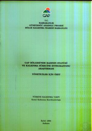 GAP Bölgesi'nde Kadının Statüsü Ve Kalkınma Sürecine Entegrasyonu Araştırması