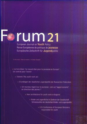 İÇİNDEKİLERContents Table des matieres Inhaltsverzeichnis The White Paper !a new impetus for European youth': a contract for the future Le Livre blanc "un nouvel elan pour la jeunesse en Europe" : un central pour I'avenir Das WeiBbuch "Neuer Schwung fur die Jugend Europas" - ein Vertrag fur die Zukunft Ireland's youth policy for the new millennium - the Youth Work Act 2001 I Irlande: une politique jeunesse dans le nouveau millenaire - La loi sur l'action en faveur de la jeunesse-2001 Irlands Jugendpolitik fur das neue Jahrtausend - Das Gesetz liber Jugendarbeit 2001 Youth policy in the Russian Federation La politique jeunesse en Russie Grundlagen der staatlichen Jugendpolitik der Russischen Foderation A new look at youth: towards updating policies for young people in France _______________ Un nouveau regard sur la jeunesse. Vers un aggiornamento des politiques en direction des jeur-Eine neue Sicht der Jugend in Frankreich New architecture for youth work in England ----------------- Une nouvelle architecture pour les services jeunesse en Angleterre Eine neue Architektur fur Jugendarbeit in England Children and youth in the centre of society: focal points of German child and youth policy - Les enfants et les jeunes au centre de la societe. Priorites de la politique allemande de l'enfance et de la jeunesse Kinder und Jugendliche im Zentrum der Gesellschaft -Schwerpunkte der deutschen Kinder- und Jugendpolitik Extracurricular youth policy in Austria Politique jeunesse extrascolaire en Autriche Die aufierschulische Jugendpolitik in Osterreich Youth information: a priority in Europe ------- L'information jeunesse: Une priorite en Europe Jugendinformation: Eine Prioritat in Europa ICNYP: a global initiative to support national youth policies and programmes . ICNYP: une initiative globale pour aider au developpement des programmes et politiques jeunesse ICNYP: Eine weltweite Initiative zur Unterstützung nationaler Jugendpolitiken 6th Conference of European ministers responsible for youth, 7- 9 november 2002 Thessaloniki, Greece 6eme conference des ministres europeens responsables de la jeunesse. Novembre 2002, Grece 6. Konferenz der europaischen Jugendministerinnen und Jugendminister vom 7. bis 9. November 2002 in Thessaloniki News ---------------- Actualites Kurzmeldungen Information on IJAB, NYA, INJEP Information sur IJAB, NYA, INJEP Information über IJAB. NYA. INJEP ![]() |