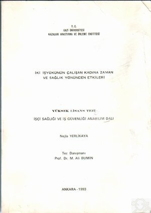 İÇİNDEKİLERİÇİNDEKİLERÖNSÖZ İÇİNDEKİLER TABLOLAR LİSTESİ KISALTMALAR GİRİŞ V E A M A Ç GENEL B İ L G İ L E R BÖLÜM l KADININ ÇALIŞMA HAYATINA GİRİŞİNİN TARİHÇESİ VE ÇALIŞAN KADINLARLA İLGİLİ GENEL BİLGİLER 1.1. Kadınların Çalışma Hayatına Girişinin Tarihçesi 1.1.1. Genel Olarak 1.1.2. Ülkemiz Dışındaki Tarihi Gelişmeler 1.1.3. Ülkemizdeki Tarihi Gelişmeler 1.2. Ülkemizde Çalışan Kadınlara Ait Genel Bilgiler 1.2.1. Çalışan Kadınların Nicel Yoğunlukları 1.2.2.Kadınların Çalışma Hayatındaki Sektörel Yoğunlukları 1.2.3. Kadın ve İşsizlik 1.2.4. Kadın ve Eğitim 1.2.5. Kadını Çalışmaya İten Nedenler 1.2.6. Kadın İşgücü ve Kalkınma 16ÇALIŞAN KADININ İKİ İŞYÜKÜ AÇISINDAN DEĞERLENDİRİLMESİ 2.1. Çalışan Kadın ve I.İşyeri : Evi 2.1.1. Çalışan Kadın ve Evişleri 2.1.2. Annelik ve Çalışan Kadın 2.1.3. Aile Kurumu ve Çalışan Kadın 2.2. Ev ve İşyeri Sorumluluğunun Çalışan Kadına Etkileri 2.2.1. Sağlık Sorunları 2.2.1.1. Bedensel Etkiler 2.2.1.2. Ruhsal Etkiler 2.2.1.3. Evişlerinden Kaynaklanan İş Kazaları 2.2.2. Sosyal Sorunlar 2.2.2.1. Zaman Yetersizliği Nedenli Sosyal Sorunlar 2.2.2.2. İşyerindeki Sosyal Sorunlar 2.3. İki İşyükünün İşyerine Etkileri 2.3.1. Faaliyete Hazır Olma ve İş Kazaları 2.3.2 İşyerinde Devamsızlık MATERYAL VE YÖNTEM BULGULAR VE TARTIŞMA SONUÇ VE ÖNERİLER ÖZET YABANCI DİLDE ÖZET KAYNAKLAR ÖZGEÇMİŞ EK-I NOTLARGazi Üniversitesi Kazaları Araştırma ve Önleme Enstitüsü İşçi Sağlığı ve İş Güvenliği Anabilim Dalı Yüksek Lisans Tezi ![]() |
