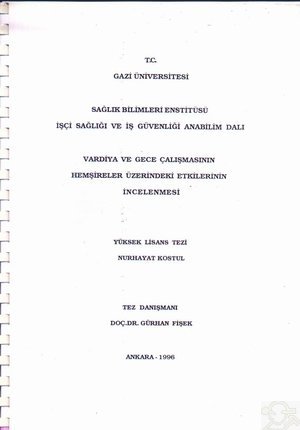 Kitap : Vardiya ve Gece Çalışmasının Hemşireler Üzerindeki Etkilerinin İncelenmesi