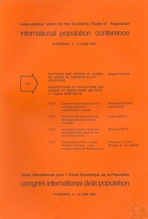 İÇİNDEKİLERPATTERNS AND TRENDS IN CAUSES OF DEATH IN LOW MORTALITY COUNTRIES REPARTITIONS ET EVOLUTIONS DES CAUSES DE DECES DANS LES PAYS A FAIBLE MORTALITE Jacques VALLIN F.8.1 Causes of death patterns in low mortality countries: a classification analysis F.8.2 Evolution des causes de deces dans quelques pays a faible mortalite F.8.3 Increased survival in East and South-East Asia: towards new outer limits of life F.8.4 Patterns and trends in causes of death in Kuwait - a low mortality advanced Arab country Nicolas BROUARD Alan LOPEZ France MESLE Richard LEETE Krishnan L KOHLI Musa'ad H. AL-OMAIN ![]() |