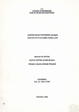 İÇİNDEKİLERİÇİNDEKİLER Kabul ve Onay İçindekiler Listesi Simgeler ve Kısaltmalar Tablolar Dizini 1. GİRİŞ 1.1 Varsayımlar 1.2. Sınırlılıklar 1.3. Tanımlar 2. GEREÇ ve YÖNTEM 2.1. Evren ve Örneklem 2.2. Araştırmanın Şekli ve Yapıldığı Yer 2.3. Veri Toplama 2.4. Veri Analizi 3. BULGULAR 3.1. İşyeri İle İlgili Bulgular 3.2. Çalışan Çocuklarla İlgili Bulgular 3.2.1. Kişisel Bilgiler 3.2.2. Öğrenim Durumu 3.2.3. Mesleki Durum 3.2.4. Çalışma Koşulları 3.3. Yapılan İş İle İlgili Bulgular 3.4. Araştırma grubundaki Çalışan Çocukların Sosyoekonomik Durumu 4. TARTIŞMA 5. SONUÇ ve ÖNERİLER ÖZET SUMMARY KAYNAKLAR EKLER Ek-1. ![]() |