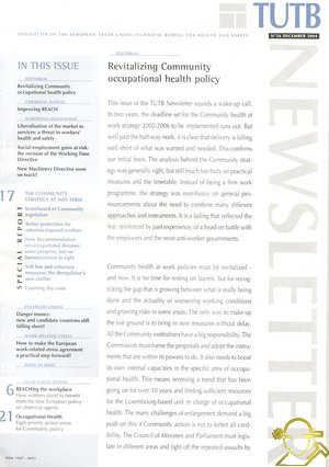 İÇİNDEKİLERRevitalizing Community occupational health policyCHEMICAL AGENTS Improving REACH EUROPEAN LEGISLATION Liberalisation of the market in services: a threat to workers' health and safety Social/employment gains at risk: the revision of the Working Time Directive New Machinery Directive soon on track? THE COMMUNITY STRATEGY AT MID-TERM Scoreboard of Community legislation Better protection for asbestos-exposed workers New Recommendation on occupational diseases: some progress, but no harmonization in sight Soft law and voluntary measures: the deregulator's new clothes Counting the costs Danger money: new and candidate countries still falling short? How to make the European work-related stress agreement a practical step forward? TUTB PUBLICATIONS REACHing the workplace How workers stand to benefit from the new European policy on chemical agents Occupational Health Eight priority action areas for Community policy ![]() |