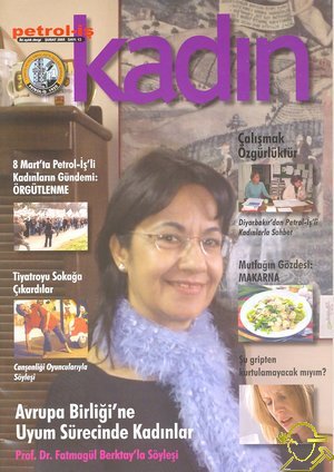 İÇİNDEKİLERMerhabaDünya Kadın Yürüyüşçüleri Yine Yollarda 8 Mart'fa Petrol-İş'li Kadınların Gündemi: Örgütlenme Seka Direniyor. Çözüm: Üretim Yapan Modern Bir Fabrika Ayrımcılığa Geçit Yok BM Kadınlara Karşı Her Türlü Ayrımcılığın Önlenmesi Komitesi'nin Türkiye Raporu Barış Mücadelesinde Kadınlar Tarihten Kadın Sesleri / Hazırlayan: Yard. Doç. Dr. Serpil Çakır Kadınlar Lehine Politikalar İçin Çalışacağız Kadın Örgütlerinin 2004 Değerlendirmeleri ve Hedefler Her Şeyin Başı İletişim Petrol-iş Ankara Şubesi'nden "Ailede iletişim" Seminerleri Ataerkil Düzene Doping Avrupa Birliği'ne Uyum Sürecinde Kadınlar Prof. Dr. Fatmagül Berktay'la Söyleşi Çalışmak Özgürlüktür Diyarbakır'dan Petrol-İş'li Kadınlarla Sohbet Şu Andaki Hedefi, Bilgisayar Öğrenmek Bir Kadın, Bir Hikâye: Fehime Arkan Özelleştirme Mağdurları İçin Hükümetten Yeni Çözüm Önerisi: Ya İşsizlik, Ya İşsizlik Haklarımız / Hazırlayan: Petrol-iş Sendikası Hukuk Müşaviri Av. Serap Özdemir Paranın Kontrolü Erkeklerin Elinde Vinay Bahl ile Söyleşi Şu Gripten Kurtulamayacak mıyım? Sağlık Köşesi Erken Teşhis Hayat Kurtarır Jinekologunuz Diyor ki / Hazırlayan: Dr. Selma Dönmez Küçük Bir Porsiyon Bencillik Ruh Hali Evet, Mutfakta Birileri Var! Gökkuşağının Altında Bir Akşam Yemeği Batman Gökkuşağı Çadırı'ndan Kadınlarla Sohbet Susan Sontag, ya da Örnek Bir İsyankârın Ölümü Kadınlar İçin Bir Sinema Şöleni: Filmmor Kültür-Sanat Tiyatroyu Sokağa Çıkardılar Canşenliği Oyunculan'yla Söyleşi Güzellik Derdini Söylemeyen ![]() |