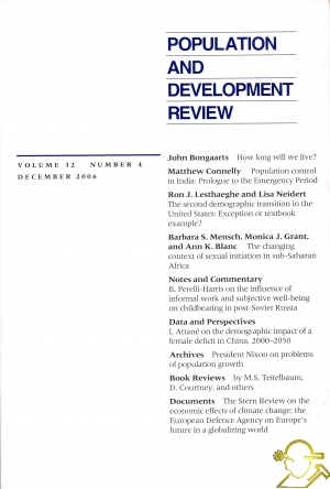 İÇİNDEKİLERARTICLESHow Long Will We Live? John Bongaarts Population Control in India: Prologue to the Emergency Period Matthew Connelly The Second Demographic Transition in the United States: Exception or Textbook Example? Ron J. lesthaeghe Lisa Neidert The Changing Context of Sexual Initiation in sub-Saharan Africa Barbara S. Mensch Monica J. Grant Ann K. Blanc NOTES AND COMMENTARY The Influence of Informal Work and Subjective Well-Being on Childbearing in Post-Soviet Russia BRLENNA PERELLI-HARRIS ![]() |