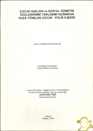 İÇİNDEKİLERİÇİNDEKİLERTEŞEKKÜR....................................................................................................... ÖZET................................................................................................................. SUMMARY........................................................................................................ İÇİNDEKİLER.................................................................................................. TABLOLAR LİSTESİ........................................................................................ BÖLÜM I: MODERN ÇOCUKLUK PARADİGMASI, ÇOCUK-POLİS İLİŞKİSİ VE GÜÇLENDİRİCİ SOSYAL HİZMET............................................................. 1.1. ARAŞTIRMANIN PROBLEMİ..................................................................... 1.2. KURAMSAL ÇERÇEVE............................................................................. 1.2.1. Modern Çocukluk Paradigması ve Çocuk - Polis İlişkisi......................... 1.2.1.1.Suça Yönelen Çocukların Haklan ve Çocuk- Polis İlişkisi..................... 1.2.1.2. Polisliğin Değişen Felsefesi ve Çocuğa Yansımaları............................ 1.2.2. Çocuk Adalet Sistemi ve Çocuk-Polis İlişkisi........................................... 1.2.2.1. İngiltere'deki Çocuk Adalet Sistemi ve Çocuk-Polis İlişkisi................... 1.2.2.2. Türkiye'de Çocuk Adalet Sistemi ve Çocuk- Polis İlişkisi...................... 1.2.3. Sosyal Hizmette Güçlendirme Yaklaşımı ve Çocuk Polis İlişkisi.............. 1.2.3.1. Sosyal Hizmette Güçlendirme Yaklaşımı............................................. 1.2.3.2. Çocuk Hakları ve Güçlendirme Yaklaşımı Açısından Çocuk Adalet Sisteminde Çocuk- Polis İlişkisi.......................................................... 1.3. ARAŞTIRMANIN AMACI........................................................................... 1.4. ARAŞTIRMANIN TANIMLARI..................................................................... 1.5. ARAŞTIRMANIN ÖNEMİ........................................................................... BÖLÜM II: YÖNTEM......................................................................................... 2.1. ARAŞTIRMA MODELİ................................................................................ 2.2. VERİ TOPLAMA SÜRECİ .......................................................................... 2.3. EVREN VE ÖRNEKLEM............................................................................. 2.4. VERİ TOPLAMA ARAÇLARI..................................................................... 2.5. VERİLERİN ÇÖZÜMLENMESİ.................................................................. 2.6. SÜRE VE OLANAKLAR............................................................................. 2.7. ARAŞTIRMANIN ETİK SORUNLARI........................................................ BÖLÜM III: ÇOCUKLARA İLİŞKİN BULGULAR VE YORUM......................... 3.1. ÇOCUKLARI TANITICI BULGULAR .......................................................... 3.2. BİR MEYDAN OKUMA OLARAK SUÇ DAVRANIŞININ ORTAYA ÇIKIŞ SÜRECİ VE SONRASI..................................................................................... 3.2.1. Hikaye Başlıyor....................................................................................... 3.2.2. Polisle Karşılaşma, Üç Maymun Oyunu ve Kısırdöngünün Oluşması .... BÖLÜM IV: POLİSLERE İLİŞKİN BULGULAR VE YORUM............................. 4.1. POLİSİN SOSYODEMOGRAFİK ÖZELLİKLERİNE İLİŞKİN BULGULAR. 4.2. POLİSİN ÇALIŞMA YAŞAMINA İLİŞKİN BULGULAR................................ 4.3. POLİSİN KARŞILAŞTIĞI ÇOCUĞUN ÖZELLİKLERİ VE ÇOCUĞA YAKLAŞIMINA İLİŞKİN BULGULAR................................................................ 4.3.1. Polislerin Karşılaştığı Çocukların Özellikleri............................................ 4.3.2. Polisin Çocuğa Yaklaşımına İİişkin Bulgular............................................ 4.3.2.1. Polislerin Çocukluk Anlayışlarına İlişkin Bulgular ................................ 4.3.2.2. Polisin Çocuğun Suça Yönelme Nedenleriyle İlgili Düşüncelerine İlişkin Bulguiar....................................................................................... 4.3.2.3. Polislerin Gözüyle Çocukların Gözaltı Sürecine İlişkin Bulgular........... 4.3.2.4. Polislerin Çocuk Adalet Sistemini Değerlendirmelerine İlişkin Bulgular 4.4. POLİSİN BAZI ÖZELLİKLERİ İLE ÇOCUĞA YAKLAŞİMİ ARASINDAKİ BAĞLANTILARA İLİŞKİN BULGULAR..................................................... 4.4.1. Polislerin Sosyodemografik Özellikleri ile Çocuğa Yaklaşımları Arasındaki İlişkilerle İlgili Bulgular............................................................ 4.4.2. Polislerin Çalışma Yaşamı Özellikleri İle Çocuğa Yaklaşımları Arasındaki Bağlantılara İlişkin Bulgular................................................... BÖLÜM V: SONUÇ VE ÖNERİLER...............,.................................................. 5.1. SONUÇLAR .............................................................................................. 5.1.1. Çocuk Bölümüne İlişkin Sonuçlar............................................................ 5.1.2. Polis Bölümüne İlişkin Sonuçlar ........................................,.................... 5.1.2.1. Poüslerin Sosyodemografik ve Çalışma Yaşamı Özelliklerine İlişkin Sonuçlar................................................................................................. 5.1.2.2. Polislerin Karşılaştıkları Çocukların Özelliklen ve Çocuğa Yaklaşımına İlişkin Sonuçlar.............................................................. 5.1.2.3. Polislerin Bazı Özellikleri İle Çocuğa Yaklaşımları Arasındaki