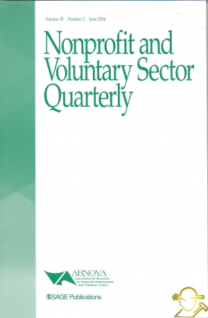 İÇİNDEKİLERNONPROFIT and VOLUNTARY SECTOR QUARTERLYVolume 35 Number 2 CONTENTS ARTICLES Constructing Civil Society: Citizen Associations in Israel in the 1950s Paula Kabalo The Larger They Get: The Changing Size Distributions of Private Human Service Organizations David J. Tucker and David H. Sommerfeld Nonprofit Fund-Raising in Competitive Donor Markets Jeremy Thornton Worker Motivations, Job Satisfaction, and Loyalty in Public and Nonprofit Social Services Carlo Borzaga and Ermanno Toriia Giving and Volunteering as Distinct Forms of Civic Engagement: The Role of Community Integration and. Personal Resources in Formal Helping Keely S. Jones Community Foundation Performance: Bridging Community Resources and Needs Chao Guo and William A. Brown Should Donors Care About Overhead Costs? Do They Care? Woods Bowman INSIGHTS Nonprofits as Social Capital and Agents in the Public Policy Process: Toward A New Paradigm Herrington J. Bryce BOOK REVIEWS Strategy Mix for Nonprofit Organizations: Vehicles for Social and Labour Market Integration edited by Annette Zimmer and Christina Stecker REVIEWED BY WOODS BOWMAN Investing in Capacity Building: A Guide to High-Impact Approaches by Barbara Blumenthal reviewed by heathek getha-taylor Marketing Management for Nonprofit Organizations (2nd Ed.) by Adrian Sargeant REVIEWED BY PAUL GOVEKAR Civil Society: Measurement, Evaluation, Policy by Helmut K. Anheier REVIEWED BY PETER f RUMKIN Governance as Leadership: Refraining the Work of Nonprofit Boards by Richard P. Chait, WiUiam P. Ryan and Barbara E. Taylor REVIEWED BY MARTHA GOLENSKY American Creed: Philanthropy and the Rise of Civil Society, 1700-1865 by Kathleen McCarthy REVIEWED BY MARK DOUGLAS McGARVIE Thank You Note ![]() |