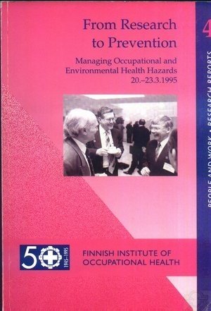 İÇİNDEKİLERCONTENTSPreface J. Rantanen Opening Ceremony Opening Addresses Dr. M. Lehto Mr. M. Hurmalainen Dr. M. Mikheev Dr. J. Takala Dr. A. Berlin Prof. J. Jeyaratnam Mr. P. Tuomisto Occupational health in Finland 1945-1995; TTL-FlOH - 50 years J. Rantanen Changes in exposure patterns Changes in exposure panoramas and challenges to prevention T. Okubo Changing patterns of exposure to common physical agents A.J. Brammer Psychosocial hazards: Assessment issues T. Cox, A. Griffiths Design goals of indoor air quality in industrial buildings R. Niemela, A. Tossavainen, V. Riihimaki, P. Kalliokoski, T. Mannelin Indoor air quality of office buildings in the Helsinki area E. Kahkönen, M. SundenThe effect of TUTTAVA housekeeping programme on physical and psychosocial work environment H. Laitinen, J. Kuusela, P.-L. Rasa, J. Saari Changes in work characteristics and work load among elderly workers: A 10-year follow-up of municipal employees in Finland P. Huuhtanen, C.-H. Nygard, K. Tuomi, R. Martikainen Work physiological field research in 1974-1994: From heavy dynamic to static jobs V. Louhevaara Farm 2001 - towards the healthy farm P. Kalliokoski, S. Haatainen, T. Husman, M. Kallionpaa, H. Kallunki, J. Kangas, M. Kotimaa, K. Louhelainen, K. Ojanen, N. Nevala-Puranen, E. Sorainen Health effects and risk assessment Research and the prevention of back pain: Theory and practice J.D.G. Troup Diagnostics of asbestos-related cancers in Finland A. Karjalainen, S. Anttila, M.S. Huuskonen, K. Koskinen, A. Tossavainen, T. Tuomi, J. Rantanen Health hazards and work in moderate cold B. Griefahn, P. Mehnert, P. Erode, A. Forsthoff Psychosocial aspects of cumulative trauma disorders M.J. Smith, P. Carayon Work demands, job satisfaction and burnout in computer professionals S. Toppinen, R. Kalimo State of health of the Polish rural population B. Skretowicz, J. KossakowskiNew tools for prevention New tools for designing workplaces P. Kern, W. Bauer Managing occupational and environmental health hazards: Health and economic outcomes O. S. Miettinen A new concept for maintaining work ability during ageing J. Ilmarlnen, P. Huuhtanen, V. Louhevaara, O. Nasman Workplace health promotion - a contribution to the prevention of work-related diseases F. Kochan, B. Matschke, W. Janzen Ergonomic data information system for workplace design J. Lehtela, M. Kiiskinen Allergy caused by acrylate compounds - history, research and prevention L. Kanerva, T. Estlander, R. Jolanki, M.-L. Sysilampi Noise scan - an expert system with multiple areas of expertise E. Toppila, J. Starck, I. Pyykkö, Y. Auramo Evaluation of expected prevention effect of new Occupational Injury Insurance Act in Norway G. Mowe, G. Tellnes Physical risk factors and prevention of their effects: Recent INRS contributions J-J. Vogt, H.S. Arbey National prevention strategies Research to policy decisions J. Jeyaratnam Strategies for regulation and services in occupational health and safety J. RantanenNational prevention strategy R.A. Lemen Prevention of musculoskeletal disorders through standards and guidelines: Possibilities and limitations A. Kilbom Information, education and training strategies in occupational health and safety W-O. Phoon Does a research institute have an impact - and how to improve it? J.D. Millar Global situation in occupational health and safety Current occupational health and safety needs in Africa F.K. Muchiri Prevention R.A. Lemen Current occupational health and safety needs in developing countries in Asia T. Punpeng Current occupational health and safety needs in the NlS countries N.F. Izmerov Occupational health and safety in the European Union: Current situation, new needs and approaches W.J. Hunter, A. Berlin, J. Biosca, R. Haigh, A. Vanvossel Triathlon Session How to set priorities for prevention? T. Norseth F.K. MuchiriFuture perspectives for research T. Punpeng H. Riihimöki Collaboration and networking D. Gold M. Mikheev B.H. Chen A. Berlin Summary and conclusions N.H. Stacey Dinner speech S. Hernberg Author index List of participants NOTLARPeople and Work Research Reports 4 Managing Occupational and Environmental Health Hazards 20-23.3.1995 ![]() |