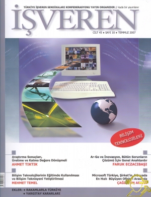 BAŞKANDAN "Yeni Dönemde Sorunlarımız ve Beklentilerimiz" 4 • EDİTÖRDEN "İş Sağlığı ve Güvenliğinde AB'ye Uyum" ( NELER OLUYOR TÜRKİYE 7 ; ZOOM "Araştırma Sonuçlan Üretime ve Katma Değere Dönüşmeli" AHMET TIKTIK T.C. BAŞBAKAN DEVLET PLANLAMA TEŞKİLATI MÜSTEŞARI 1 7 * ZOOM "Bilişim Teknolojilerinin Eğitimde Kullanılması ve Bilişim Teknİs) Yetiştirilmesi" MEHMET TEMEL MİLLİ EĞİTİM BAKANLIĞI MÜSTEŞAR VEKİLİ 2J * ZOOM "Ar-Ge ve İnovasyon, Bütün Sorunl. Çözümü İçin Genel Anahtardır" FARUK ECZACIBAŞI ECZACIBAŞl HOLDİNG A.Ş. YÖNETİM KURULU BAŞKAN YARDİMCİSİ 28 ZOOM "Özel Eğitim Kurumları, Bilişime ve Diğer Sektörlere Eleman Yetiştirmektedir" CANSIN KAVUKÇU İNAN TÜM ÖZEL EĞİ KURUMLARI İŞVERENLERİ SENDİKASI (TEKİS) YÖNETİM KURULU BAŞKANI,?! *■ ZOOM "Bilgi Toplumuna Dönüşümü Hedefle Ülkemizde Bilişim Altyapısının Geliştirilmesi İçin Çalışılmadır" ALTAY ELBEK BİLGİ VE İLETİŞİM TEKNOLOJİLERİ İŞVERENLERİ SENDİK (BİTİŞ) YÖNETİM KURULU BAŞKANI 34 e ZOOM "AB, Çerçeve Programlan, Bize Avrupa'nın Ar-Ge Platformlarının Şekillen Kulübe Giriş Hakkı Sunmaktadır" HÜSEYİN GÜLER TÜBİTAK 7. ÇERÇEVE PROGRAMI ULUSAL KOORDİNATÖRÜ 57 ff ZO "UNAM-Malzeme Bilimi ve Nanoteknoloji Enstitüsü'nün Amaçlan ve Faaliyetleri" PROF. DR. SALİM ÇIRACI BİLKENT ÜNİVERSİ" FİZİK BÖLÜMÜ BAŞKANI UNAM PROJE YÖNETİCİSİ 40 • ZOOM "ODTÜ-Teknokent'in Başarısı Üretilen Bilgi ve Rekabet Güci Ölçülmektedir" UĞUR YÜKSEL ODTÜ TEKNOKENT GENEL MÜDÜRÜ 43 * ZOOM "TTGV, 1991'den Bu Yana 550'nİn Üzeri Projeye Toplam 135 Milyon ABD Doları Katkı Sağlamıştır" DR. A. METE ÇAKMAKÇI TÜRKİYE TEKNOLOJİ GELİŞTİRME VAKFI (TT GENEL SEKRETER YARDİMCİSİ 45 * ZOOM "Türkiye'nin Bilişime Uzanan Köprüsü: Türkiye Bilişim Derneği..." TURHAN MEN TÜRKİYE BİLİŞİMDERNEĞİYÖNETİMKURULUBAŞKANI47* ATATÜRK 125 YAŞINDA... "Cumhuriyetle Yaşıt Bir Ankaralı'danZ. Abidesi ve Atatürk" HALİL MAKARACI EMEKLİ AVUKAT 49 * KADINLAR VE GENÇLERİ^ • SÖYLEŞİ "Mİcrosof Türkiye, Şirke Dünyada En Hızlı Büyüyen Ofisleri Arasında" ÇAĞLAYAN ARKAN MİCROSOFT TÜRKİYE GENEL MÜDÜRÜ 54 • SANAT "Ekslil Geniş Bir Anlatım ve Yaratıcılık Fırsatı Veriyor" HASİP PEKTAŞ ANKARA EKSLİBRİS DERNEĞİ BAŞKANI 58 • TİSK HABERLER :i KIDEM TAZMİNATI TAVANI DEĞİŞTİ 65 • YÜZDE ON İŞKOLU BARAJİNİ AŞAN SENDİKALAR 66 • AVRUPA AVRUPA 6 TARİHTE BU AY 70 : MOZAİK "84 Yaşındaki Delikanlının Yaşamındaki Renkler" İSMAİL BAYER 72 * ARKEOGEZİ "Efsan Diyarı Gordion" 74 * İSTATİSTİK 78 • YENİ YAYINLAR
