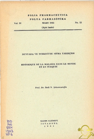 Kitap : Folia Pharmaceutica (Dünya'da ve Türkiye'de Sıtma Tarihçesi)