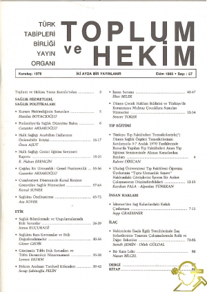 İÇİNDEKİLERToplum ve Hekim Yayın Kurulu'ndanSAĞLIK HİZMETLERİ, SAĞLIK POLİTİKALARI • Kurum Hekimliğinin Sorunları/ Handan BOYACIOĞLU • Finlandiya'da Sağlık Düzeyine Bakış/ Gazanfer AKSAKOĞLU • Halk Sağlığı Anabilim Dallarının Önlenebilir Eriyişi/ Özen AŞUT • Halk Sağlığı Gezici Eğitim Semineri Raporu/ K. Hakan ERENGİN • Çağdaş Bir Uzmanlık: Genel Pratisyenlik/ Gazanfer AKSAKOĞLU • Cumhuriyet Döneminde Kırsal Kesime Götürülen Sağlık Hizmetleri/ Kemal SUNER • Sağlıkta Özelleştirme/ Ata SOYER ETİK • Sağlık Bilimlerinde ve Uygulamalarında Etik Sorunlar/ Ionna KUÇURADİ • Sağlıkta Bazı Kavramlar ve Etik Değerlendirmeler/ Güner GEDİK • Günümüz Tıbbi Etik Sorunları ve Tıbbi Deontoloji Nizamnamesi/ Levent ERDEM • Hekim Andının Tarihsel Kökenleri/ Serap Şahinoğlu PELİN • İnsan Sorunu/ İlker BELEK • Dünya Çocuk Hakları Bildirisi ve Türkiye'de Korunmaya Muhtaç Çocuklara Sunulan Hizmetler/ Sencer TOKER TIP EĞİTİMİ • Türkiye Tıp Fakülteleri Temsilcileriyle Dünya Sağlık Örgütü Temsilcilerinin Katılımıyla 5-7 Aralık 1970 Tarihlerinde Bursa'da Yapılan Tıp Fakülteleri Arası Tıp Eğitimi Seminerinde Alınan Kararlardan Bazıları/ Rahmi DİRİCAN • Uludağ Üniversitesi Tıp Fakültesi Öğretim Üyelerinin "Tıpta Uzmanlık Sınavı" Hakkındaki Görüşlerini İçeren Bir Anket Çalışmasının Düşündürdükleri/ Kayman PALA - Alpaslan TÜRKKAN İNSAN HAKLARI • İskence'den Sağ Kalanlardaki Kulak Çınlaması/ Sepp GRAESSNER İLAÇ • Hekimlerin İlaçla İlgili Tercihlerinde İlaç Şirketlerinin Tanıtım Çalışmalarında Rolü ve Diğer Etkenler/ Semih SEMİN - Dilek GÜLDAL • Bir Kara Leke/ Nazan BİLGEL DERGİ KİTAP ![]() |