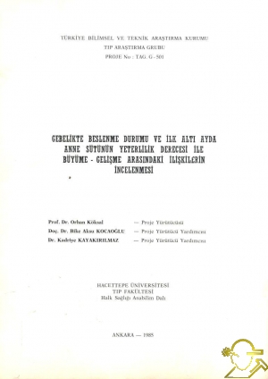 Gebelikte Beslenme Durumu ve İlk Altı Ayda Anne Sütünün Yeterlilik Derecesi ile Büyüme-Gelişme Arasındaki İlişkilerin İncelenmesi