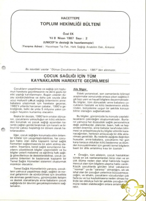 Kitap : Hacettepe Toplum Hekimliği Bülteni Yıl: 8 Sayı: 2 Özel Ek