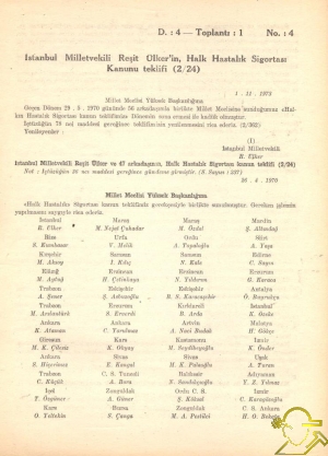 İÇİNDEKİLERİstanbul Milletvekili Reşit Ülker'in Halk Sigortası Kanunu Teklifi