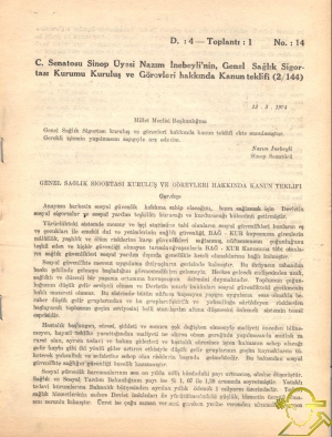 Kitap : C. Senatosu Sinop Üyesi Nazım İnebeyli'nin, GSS Kurumu Kuruluş ve Görevleri hakkında Kanun teklifi
