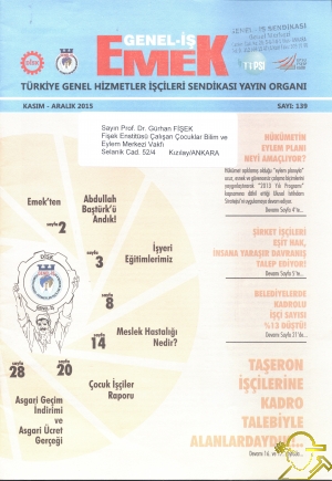 İÇİNDEKİLER-Hükümetin eylem planı neyi amaçlıyor 4-Şirket işçileri eşit hak, insana yaraşır davranış talep ediyor 5 -Taşeron işçilerine kadro talebi ile 16 -Belediyelerde kadrolu işçi sayısı % 13 düştü 21 -DİSK'ten haberler 22 -Türkiye'den haberler 24 -Uluslar arası haberler 26 -Mali-ücret konuları prtik bilgiler 28 ![]() |