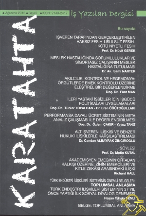 İÇİNDEKİLER-İŞVEREN TARAFINDAN GERÇEKLEŞTİRİLEN HAKSIZ FESİH-USULSÜZFESİH-KÖTÜ NİYETLİ FESİH / Prof.Dr. Nüvit GEREK 1 -MESLEK HASTALIĞINDA SORUMLULUKLAR VE SİGORTASIZ ÇALIŞANIN MESLEK HASTALIĞINA TUTULMASI / Av. Dr. Sami NARTER 19 -AKILCILIK KONTROL VE HEGOMANYA: ÖRGÜTLERDE EMEK KONTROLÜ ÜZERİNE ELEŞTİREL BİR DEĞERLENDİRME / Doç. Dr. Fuat MAN 4 -İLERİ YAŞTAKİ İŞSİZLER İÇİN İŞGÜCÜ POLİTİKALARI UYGULAMALARI Doç. Dr. Eren ÖĞÜTOĞULLARI 65 -PERFORMANSA DAYALI ÜCRET SİSTEMİNİN META ANALİZ ÇALIŞMASI İLE DEĞERLENDİRİLMESİ / Doç. Dr. Özlem ÇAKIR-Yavuz TANG 83 -ALT İŞVEREN İLİŞKİSİ VE BENZER HUKUKİ İLİŞKİERLE KARŞILAŞTIRILMASI/ Dr. Candan ALBAYRAK ZİNCİROĞLU 103 -SÖYLEŞİ / Prof. Dr. Metin KUTAL 127 -AKADEMİSYEN EMEĞİNİN ORTADAN KALKIŞI ÜZERİNE ZİHİN EMEÇİLERİ VE KİTLE ZEKASI ARASINDAKİ İLİŞKİ / Richard HALL 135 -KAMU KESİMİ ALT İSVERENİN İŞ YERİNDE / İŞLETMESİNDE YAPILACAK TOPLU İŞ SÖZLEŞMESİ / Dr. Naci ÖNSAL 163 -TÜRK ENDÜSTRİ İLİŞKİLERİ SİSTEMİNİN ÖNEMLİ BELGELERİ: TOPLUMSAL ANLAŞMA TÜRK ENDÜSTRİ İLİŞKİLERİ SİSTEMİNİN 37 YIL ÖNCE YAPTIĞI İLK SOSYAL DİYALOG DENEMESİ / Hasan Tahsin BENLİ 171 -BELGE: TOPLUMSAL ANLAŞMA 193 ![]() |