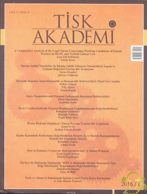 İÇİNDEKİLER-Kadın Çalışanların Çalışma Koşullarına İlişkin Hukuksal Düzenlemelerin AB ve Türk İş Hukuku BakımındanKarşılaştırmalı Bir İncelemesi 6 Doç. Dr. Ayşe Gül Kökkılınç Dokuz Eylül Üniversitesi İşletme Fakültesi İşletme Bölümü Yrd. Doç. Dr Gözde Kaya Dokuz Eylül Üniversitesi İşletme Fakültesi Uluslararası İlişkiler Bölümü -İşletme Sahibi Yöneticiler ile İşletme Sahibi Olmayan Yöneticilerin Yaşam Ve Çalışma Değerleri Üzerine Bir Araştırma 30 Prof Dr. Yavuz Demirel Kastamonu Universitesi İktisadi ve Idari Bilimler Fakültesi İşletme Bölümü Araş. Gör. Şükriye Gülpınar Aksaray Universitesi Iktisadi ve Idari Bilimler Fakültesi İşletme Bölümü -Hırsızlık Suçunun Sosyo-Ekonomik ve Demografik Belirleyicileri: Panel Veri Analizi 56 Prof Dr. Nebiye Yamak Karadeniz Teknik Üniversitesi İktisadi ve İdari Bilimler Fakültesi İktisat Bölümü Filiz Gürel Karadeniz Teknik Üniversitesi Sosyal Bilimler Enstitüsü Araş. Gör. Sinem Koçak Karadeniz Teknik Üniversitesi İktisadi ve İdari Bilimler Fakültesi Ekonometri Bölümü -Geçiş Ekonomilerinde Finansal Gelişmenin Kurumsal Belirleyicileri 70 Yrd. Doç. Dr Pınar Hayaloğlu Gümüşhane Üniversitesi İktisadi ve İdari Bilimler Fakültesi İktisat Bölümü Doç. Dr. Seyfettin Artan Karadeniz Teknik Üniversitesi İktisadi ve İdari Bilimler Fakültesi İktisat Bölümü -Türki Cumhuriyetlerde Finansal Regülasyon Uygulamalarının Değerlendirilmesi 88 Prof Dr. Ramazan Gökbunar Celal Bayar Üniversitesi İktisadi ve İdari Bilimler Fakültesi Maliye Bölümü Doç. Dr. Mustafa Yıldlran Akdeniz Üniversitesi İktisadi ve İdari Bilimler Fakültesi Maliye Bölümü Yrd. Doç. Dr Özgür Emre Koç Hitit Üniversitesi İktisadi ve İdari Bilimler Fakültesi Maliye Bölümü -Piyasa Riskinin ölçülmesi: Enerji Piyasası Üzerine Bir Uygulama 108 Yrd. Doç. Dr. Samet Evci Osmaniye Korkut Ata Üniversitesi İktisadi ve İdari Bilimler Fakültesi Uluslararası Ticaret ve Lojistik Bölümü Doç. Dr. Serkan Yılmaz Kandır Çukurova Üniversitesi İktisadi ve İdari Bilimler Fakültesi İşletme Bölümü -Kamu Kesiminde Performans Değerlendirme Sistemi: iş ve Meslek Danışmanlarına Yönelik Bir Uygulama Önerisi 136 Kutluhan Taşkın Kalkınma Bakanlığı Kurumsal ve Stratejik Yönetim Dairesi Başkanı Ahmet Tozlu Kalkınma Bakanlığı Planlama Uzmanı Rutgers Üniversitesi MPA Öğrencisi -Kurum İçi Girişimcilik Nasıl Geliştirilebilir? Bir Model Önerisi 160 Yrd. Doç. Dr. Cenk Laçin Arıkan Gediz Üniversitesi İşletme Bölümü Dr. Didem Enginoğlu Gediz Üniversitesi İşletme Bölümü -Türkiye'de Muhasebe Eğitiminin “IEPS 2: Muhasebe Meslek Mensupları İçin Bilgi Teknolojisi" Kapsamında Değerlendirilmesi 172 Doç. Dr. Abdulkerim Daştan Karadeniz Teknik Üniversitesi İktisadi ve İdari Bilimler Fakültesi İşletme Bölümü Öğr. Gör. Uğur Belikli Giresun Üniversitesi, Alucra Turan Bulutçu MYO, Muhasebe ve Vergi Uygulamaları Bölümü -Türk ve Alman İş Hukukunda İşçinin Cinsel Tacize Karşı Korunması 194 Dr. A. Eda Manav Özdemir Adalet Bakanlığı Avrupa Birliği Genel Müdürlüğü Tetkik Hâkimi ![]() |
