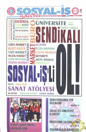 İÇİNDEKİLERGÜNDEM 2DİSK 48 YAŞINDA 3 İŞKOLU BARAJINDA YENİ DÜZENLEME 4 SOSYAL-İŞ SENDİKASINA KİMLER ÜYE OLABİLİR? 5 ÖRGÜTLENME ÇALIŞMALARIMIZ HIZLA DEVAM EDİYOR 6 ILO SÖZLEŞMELERİ VE SENDİKAL BARAJLAR FORUMU 8 SENDİKAMIZDAN TAŞERON İŞÇİLER İÇİN BROSÜR 9 8 MART DÜNYA EMEKÇİ KADINLAR GÜNÜ 13-20 KONYA SELÇUK ÜNİVERSİTESİNDE TOPLANTI YAPILDI 21 ULUDAĞ ÜNİVERSİTESİ İŞÇİLERİYLE TOPLANTI 21 ESENYURT DEVLET HASTANESİ İŞÇİLERİYLE TOPLANTI 22 SİYAMİ ERSEK HASTANESİNDE SEÇİM 22 MURAT PAŞA BELEDİYESİNDE ÖRGÜTLENDİK 22 ŞUBELERDEN HABERLER 23-25 SENDİKAMIZ BAŞKANLAR KURULU TOPLANDI 26 YARGI: 1 MAYIS'TA TAKSİM ÇAĞRISI SUÇ DEĞİL! 27 İŞÇİ SINIFININ BİRLİK, MÜCADELE DAYANIŞMA GÜNÜ 28 TEMSİLCİLİK SEÇİMLERİ 30 PAYLAŞTIKLARIMIZ 31 ![]() |