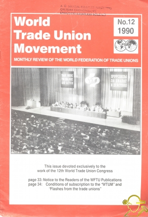 İÇİNDEKİLER-12th World Trade Union Congress(Moscow, 13-20 November 1990) -Trade unions for dialogue and action Diary and assessment of the 12th World Trade Union Congress 1 -Appeal to the workers and trade unions of the world 7 -Declaration on trade union solidarity in the 1990s 8 -What the workers expect from the trade unions in order to avoid the 1990s becoming another lost decade (Introduction to the discussion given by l. Zakaria, outgoing General Secretary of the WFTU 10 -Let us accept our mutual responsibilities for the success of the changes 15 -The participantsin the12th Congress take the floor 17 -Concerning recent world development 17 -On the economic situation in the world 2O -Regional confIicts 23 -Peace and disarmament 24 -Trade union rights, the right of women to education and jobs and the protection of the environment 26 -The future tasks of the trade unions What the workers expect from the trade unions 27 -The Renewal of the WFTU 30 -Notice to the readers of WFTU publications 33 -Conditions of subscription to WFTU publications 34 ![]() |