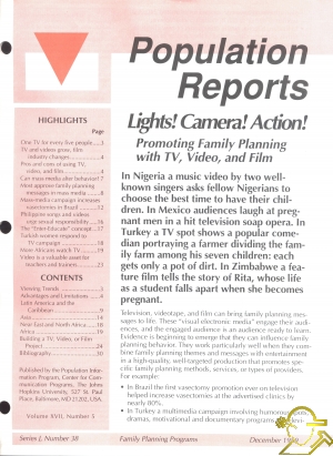 İÇİNDEKİLERHIGLIGHTS-One TV for every five people 3 -TV and videos grow, film industry changes 4 -Pros and cons of using TV, video, and Film 4 -Can mass media alter behavior? 7 -Most approve family planning messages in mass media 8 -Mass-media campaign increases vasectomies in Brazil 12 -Philippine songs and videos urge sexual responsibility l6 -The "Enter-Educate" concept 17 -Turkish women respond to TV campaign 18 -More Africans watch TV 19 -Video is a valuable asset for teachers and trainers 23 CONTENTS -Viewing Trends 3 -Advantages and Limitations 4 -Latin America and the Caribbean 9 -Near East and North Africa 18 -Africa 19 -Building a TV, Video, or Film Project 24 -Bibliography 3O ![]() |