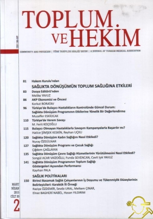 İÇİNDEKİLERHakem Kurulu'ndanSAĞLIKTA DÖNÜŞÜMÜN TOPLUM SAĞLIĞINA ETKİLERİ Dosya Editörü'nden Melike YAVUZ AKP Ekonomisi ve Öncesi Korkut BORATAV Türkiye'de Bulaşıcı Hastalıkların Kontrolünde Güncel Durum: Sağlıkta Dönüşüm Programının Etkilerine Yönelik Bir Değerlendirme Muzaffer ESKİOCAK Türkiye'de Verem Savaşı M. Ferit KOÇOĞLU Bulaşıcı Olmayan Hastalıklarla Savaşım Kampanyalarla Başarılır mı? Hatice ŞİMŞEK KESKİN , Funda SEVENCAN, Cavit Işık YAVUZ Sağlıkta Dönüşüm Programının Toplum Sağlığı Göstergeleri Açısından Performansı Kayıhan PALA SAĞLIK POLİTİKALARI Birinci Basamak Sağlık Çalışanlarının İş Doyumu ve Tükenmişlik Düzeylerinin Belirleyicileri: Karabük İli Örneği Raziye ÖZDEMİR, Sevda URAL, Meltem ÇINAR Elnaz BAGHERİ NABEL, Hasan YILDIRIM ![]() |