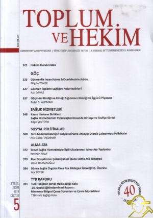 İÇİNDEKİLERHakem Kurulu'ndanGÖÇ Göçmenlik İnsan Kalma Mücadelesinin Adıdır... Nilgün TOKER Göçmen İşçilerin Sağlığını Neler Belirler? Aslı DAVAS Göçmen Kimliği ve Emeği Sığınmacı Kiimliği ve İşgücü Piyasası Polat S. ALPMAN SAĞLIK HİZMETLERİ Kamu Hastane Birlikleri: Sağlık Hizmetlerinin Piyasalaştırılmasında Bir İnşa ve Tasfiye Süreci Bilge ŞENTÜRK SOSYAL POLİTİKALAR Yeni- Muhafazakârlığın Sosyal Koruma Anlayışı Olarak Çalıştırmacı Politikalar Aslı Güleç TAŞDEMİR ALMA ATA Temel Sağlık Hizmetleriyle İlgili Uluslararası Alma Ata Toplantısı Kayıhan PALA Reel Sosyalizmin Çözülüşünün İpucu: Alma Ata Bildirgesi Onur HAMZAOĞLU Dünya Sağlık Örgütü Alma Ata Bildirgesi İdeoloji vb. Üzerine Ata SOYER TTB RAPORU Türk Tabipleri Birliği Halk Sağlığı Kolu 28. Gezici Eğitim Semineri Raporu: Marmara Bölgesi Çevre Sorunları ve Çevre Mücadelesi TTB Halk Sağlığı Kolu ![]() |