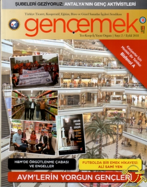 İÇİNDEKİLEREDİTÖRDEN 1TARİHİMİZDEN 4 BAŞKANDAN Ekonomik Krizin Kazanımları Tehdit Etmesine Izin Verilmemelidir 5 TANITIM ETKİNLİĞİMİZ Yayın Hayatımıza Coşkulu Bir Tanıtım Etkinliğiyle Başladık 6 MEMLEKET EMEK HABERLERİ 14 DÜNYA EMEK HABERLERİ 16 ŞUBELERI GEZIYORUZ: Antalya’nın Genç Aktivistleri 18 SANAL ÂLEMDEN Dijital Dünyada Güven Mümkün mü? 34 KİTAP SÖYLEŞİ AVM’lerin Yorgun Gençleri 38 GÜVENLİ ÇALIŞMA Kasiyerler Için Mesleki Bir Tehlike: Bisfenol A 48 SPOR Futbolda Bir Emek Hikayesi: Ali Sami Yen 51 GÜVENLİ ÇALIŞMA İşçi Sağlığı ve İş Güvenliği Meclisi’ni Tanıyalım. Can Güvenliğimiz İçin Örgütlenmeliyiz 54 DENEME Hizmet Sektörü: Hizmet Kavramı Ve Sektörün Sendikalaşması Üzerine Düşünceler 58 ARAŞTIRMA TÜİK’e Göre Gençlerin Çoğu Mutlu ve İşinden Memnun… 61 Gençler Eğitimin Dışına İtiliyor… 62 Her Beş Gençten Biri İşsiz, Eğitimli İşsiz Kitlesi Büyüyor… 63 SÖYLEŞİ H&M’de Örgütlenme Çabası ve Engeller: Haklara Saygılı Küresel Firma İmajı Gerçeği Temsil Ediyor mu? 66 GÜNDEM SEKA Neydi, SEKA İşçisi Kimdi? 78 HAKKIMIZ HUKUKUMUZ Toplu Sözleşme Kitapçıklarımızda Hangi Haklar, Kazanımlar Saklı: Biliyor muyuz? 80 BİLİM İşçiler Bilimle Buluşuyor: Ulusal Gökyüzü Gözlem Şenliği 82 İŞÇİ SINIFININ KAVRAMLARI Sömürü Düzeninin Dayanağı: ARTI - DEĞER 86 MÜZIK “İs, Pas, Kir, Çöplük, Lastik, Egsoz…” 88 EYLEM Flormar İşçileri - Kadınların Onurlu, Şenlikli ve Kararlı Direnişi 90 EDEBİYAT 93 TİYATRO Gelecek Sezondan Haberler 94 GENÇ KALEMEDEBİYAT 93 TİYATRO Gelecek Sezondan Haberler 94 GENÇ KALEM Özgür Bakış 98 SİNEMA Ahlat Ağacı 100 TEKNOLOJİ Açılın, Robotlar Geliyor! 102 Özgür Bakış 98 SİNEMA Ahlat Ağacı 100 TEKNOLOJİ Açılın, Robotlar Geliyor! 102 ![]() |